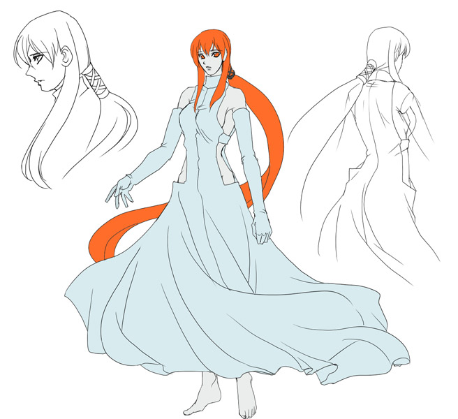 えらい簡素。髪は伸縮自在なんで適当です。ドレスの裾も風もないのにゆらゆらしてるので適当です。